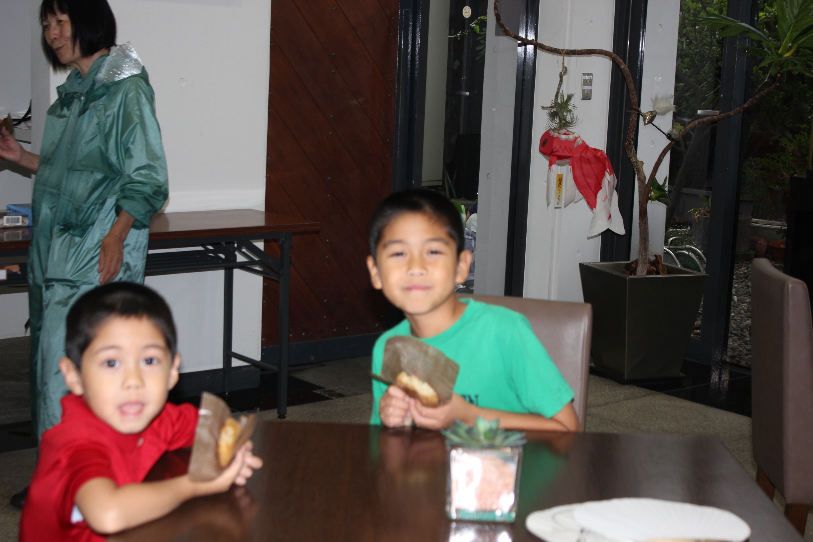 お年寄りには菊最中(皇居にて販売)を差し上げました。