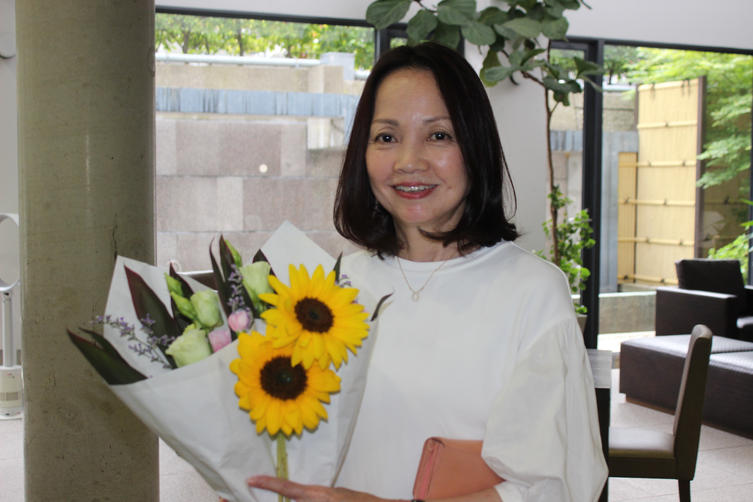 来苑された方に、ひまわりをプレゼントさせていただきました。